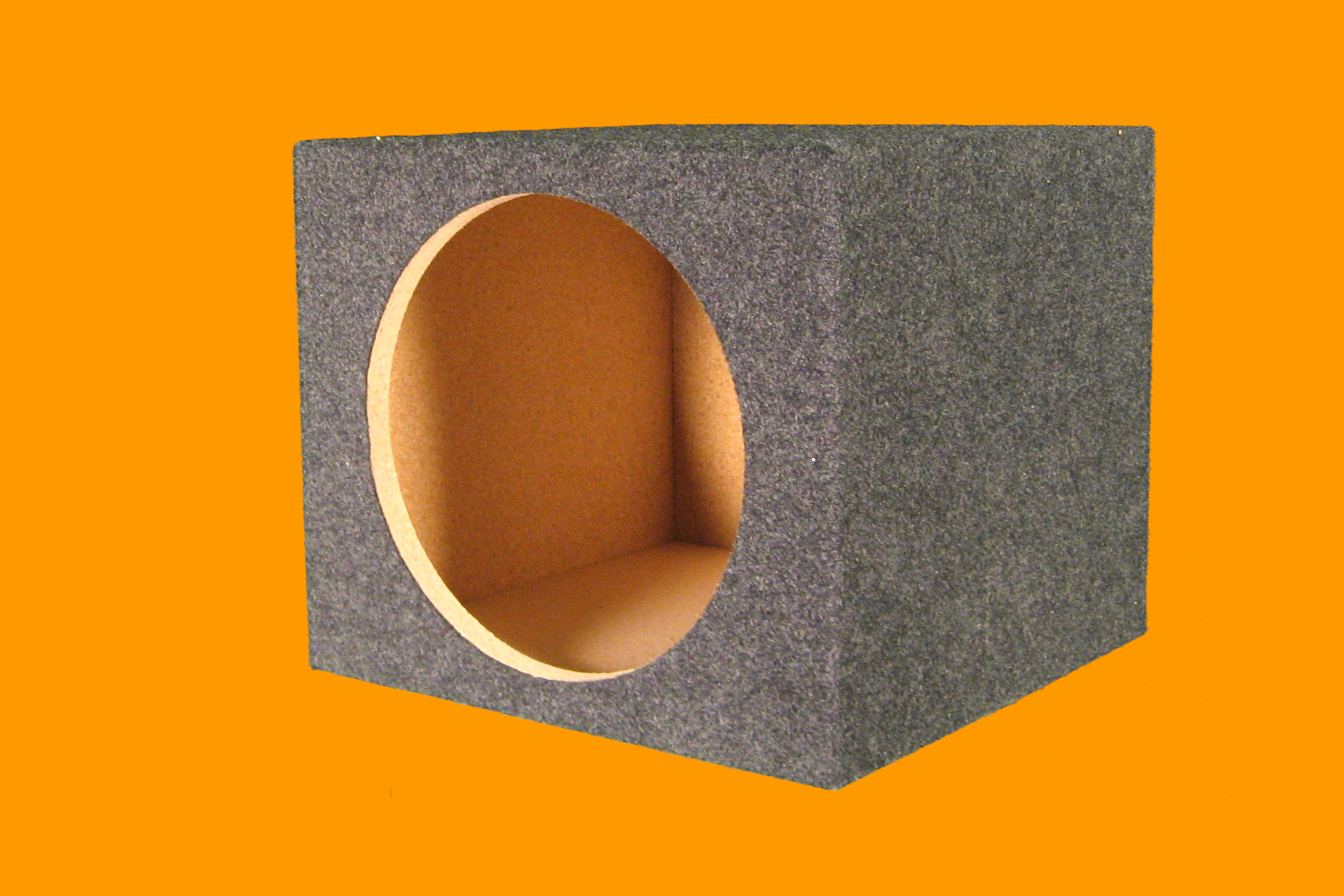 Single 10", or 12" hole cut in a square front sealed chamber with 1.25 cubic feet of air space. |
